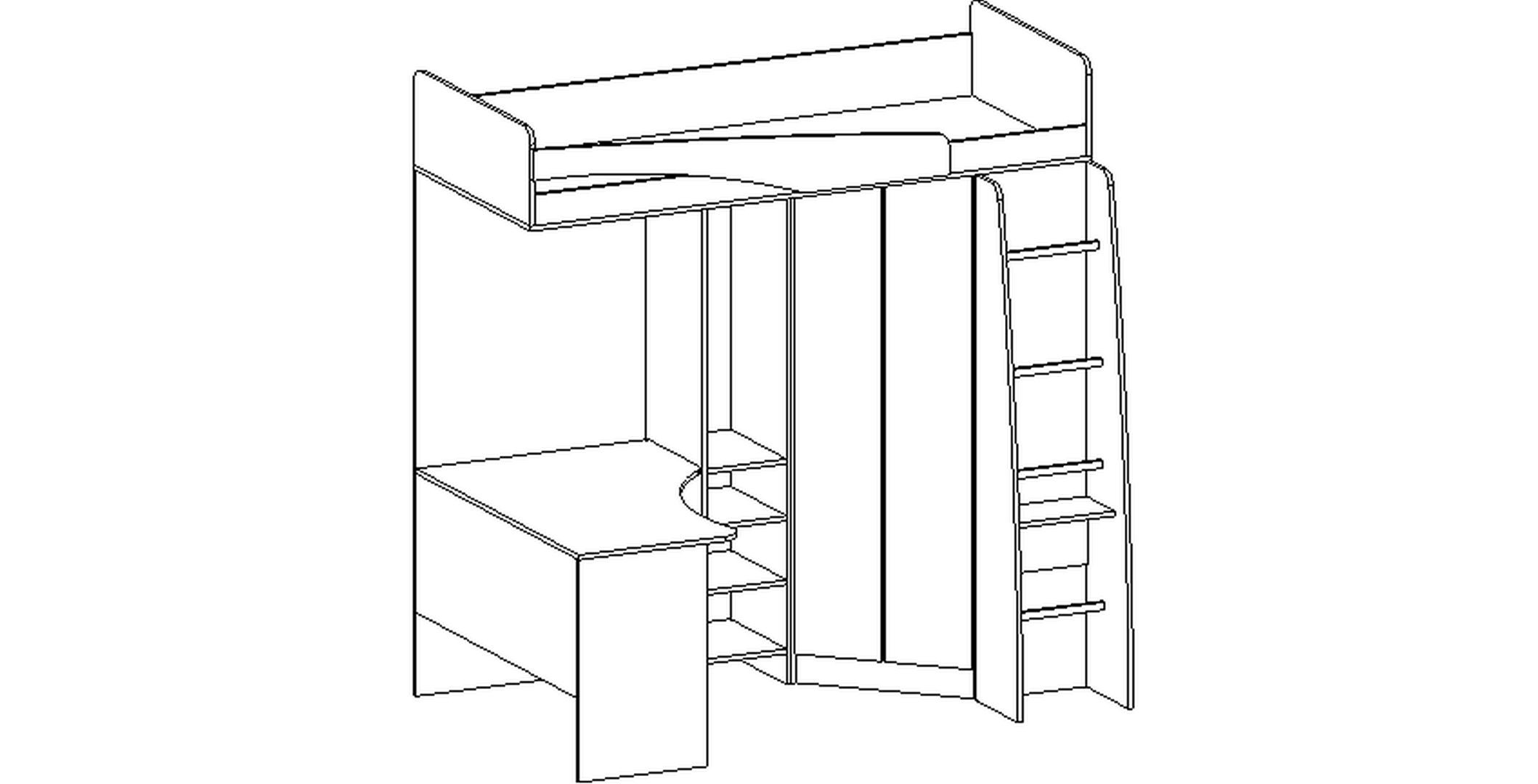 Отличный выбор мебели для школьника. Есть стол для занятий и размещения необходимых мелочей, много полок для тетрадей и книг, множество ящиков, вместительный шкаф для одежды.